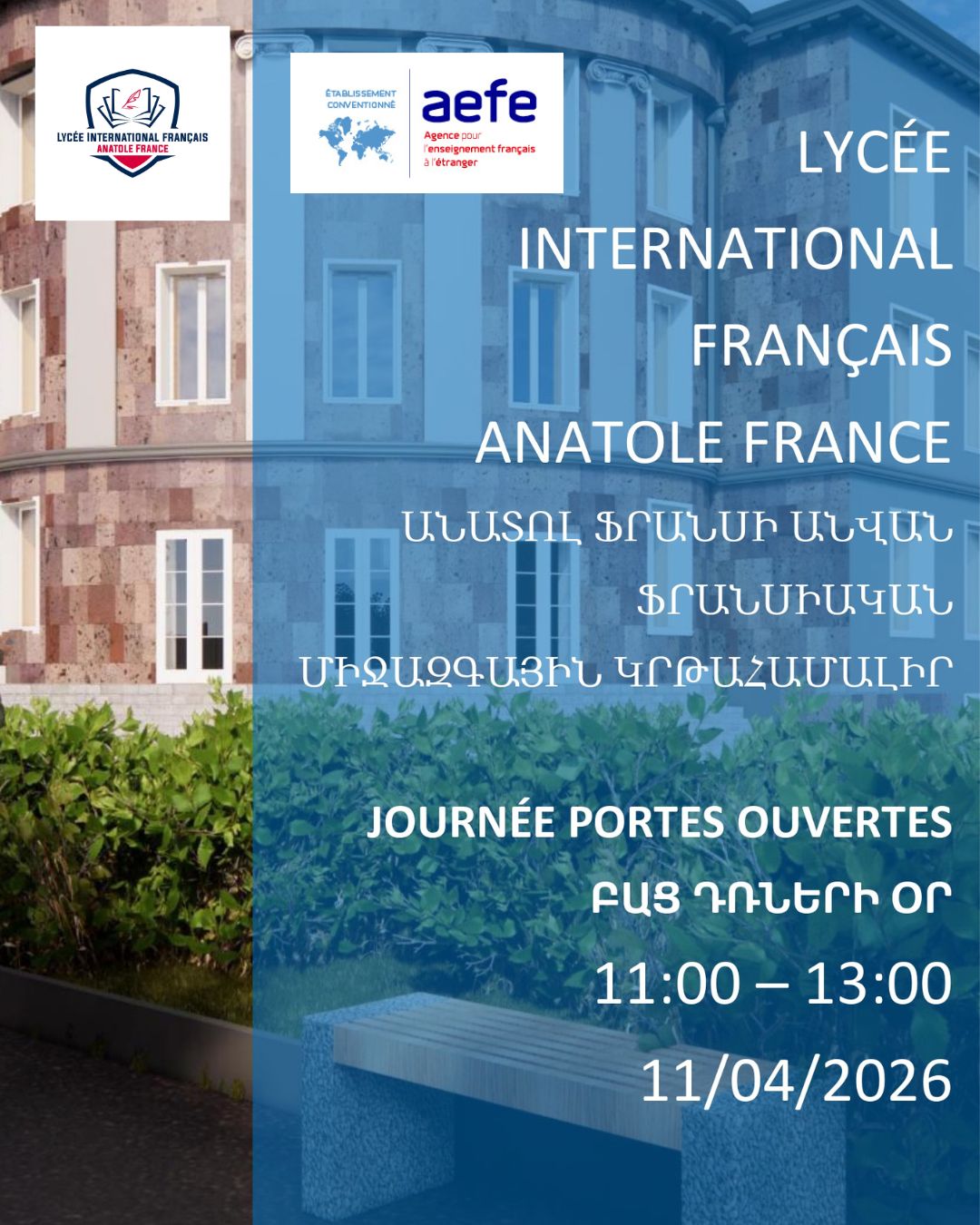 Le samedi, 11 avril 2026, les portes du Lycée international français Anatole France seront ouvertes pour tous!