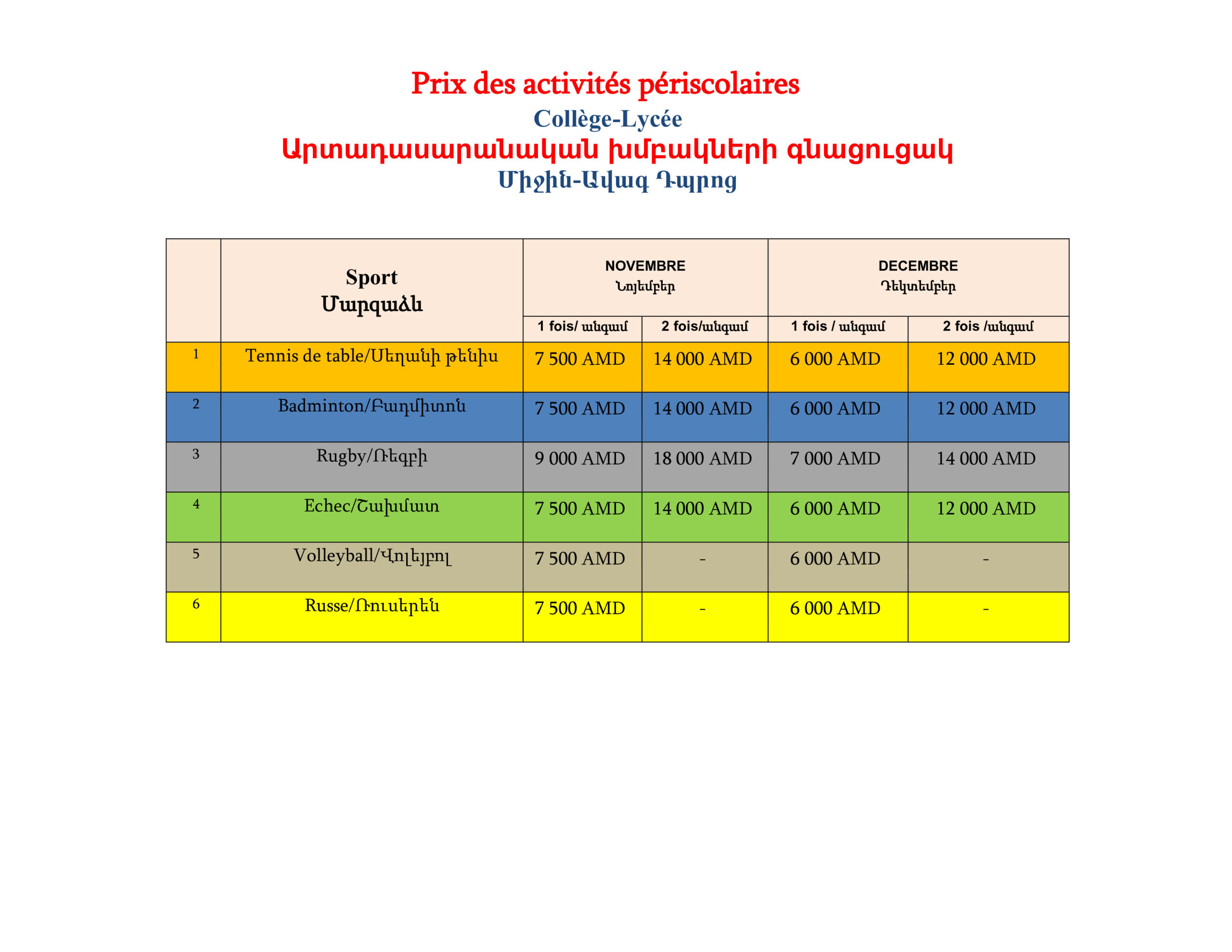 Արտադասարանական պարապմունքների վճարումների վերաբերյալ՝ ani_kivrikyan@lyceefrancais.am