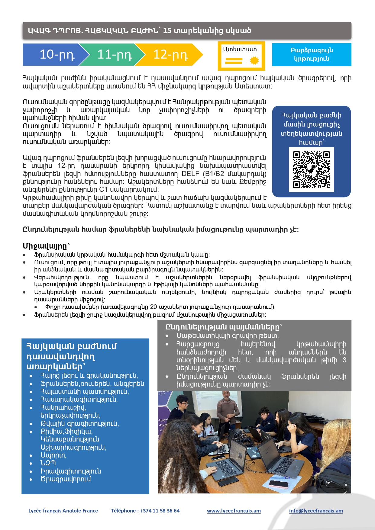 - Հայաստանում Ֆրանսիական Համալասարան ընդունվելու արտոնությունները` խստապահանջ և կանոնակարգված նախապատրաստման շնորհիվ: